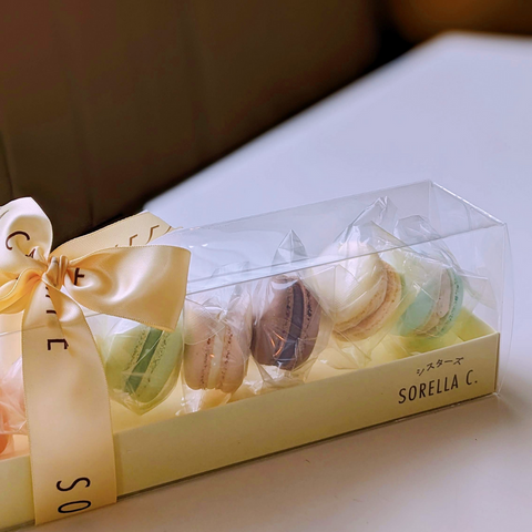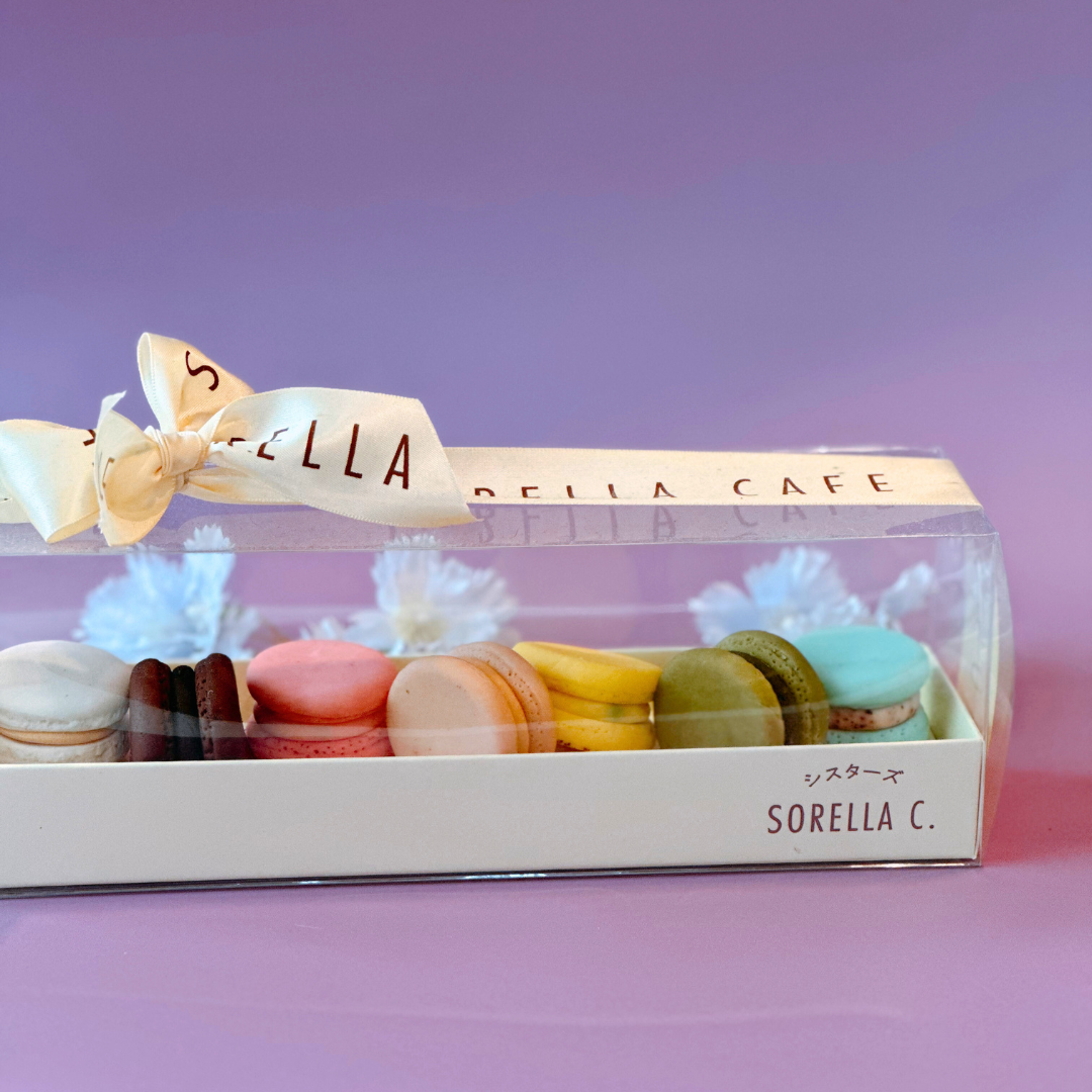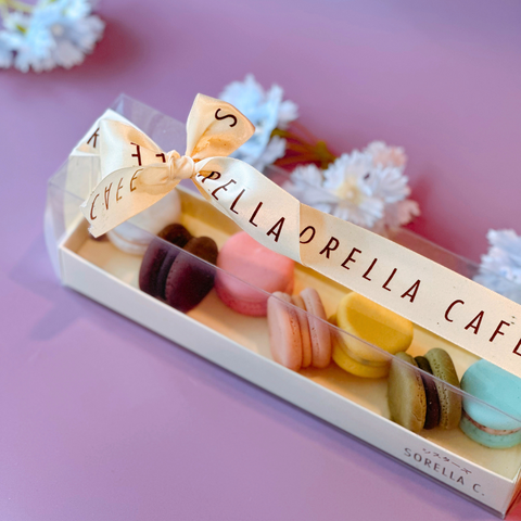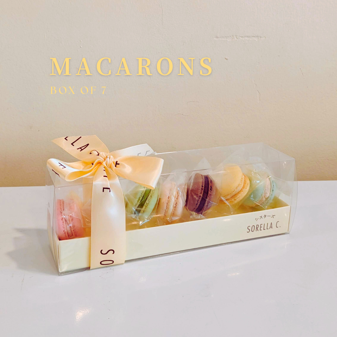 Each box contains 7 flavors of macarons that are individually wrapped and perfectly packaged in a kraft box.